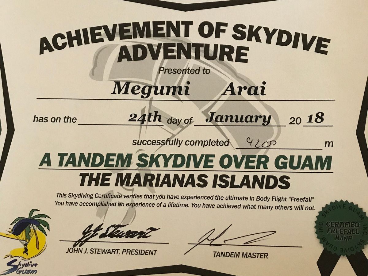 この度はスカイダイブグアムへご参加いただき、誠にありがとうございました‼