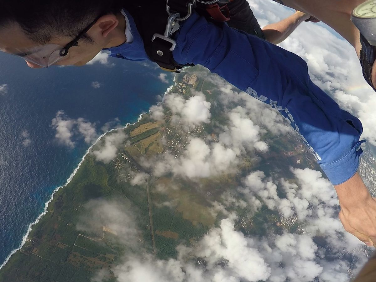 人生初のスカイダイビングをグアムにて体験。