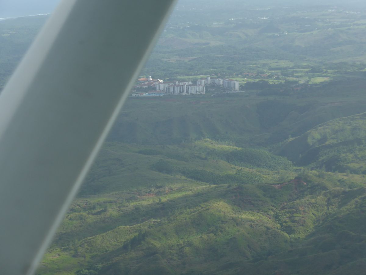 参加者全員が4200mからのダイブを選択し、私がトップバッターだったこともあって、ラッキーなことにセスナの全開状態の飛び降り口真横に座ることができたので、グアムの景色も満喫出来、遊覧飛行としても最高でしたよ。YURIが「サムーイ、オレ、トブノハジメテ、ワイルドダロー?」とか冗談を言いながら、時折、クリアーな扉を閉めたりもしてましたが...(笑)