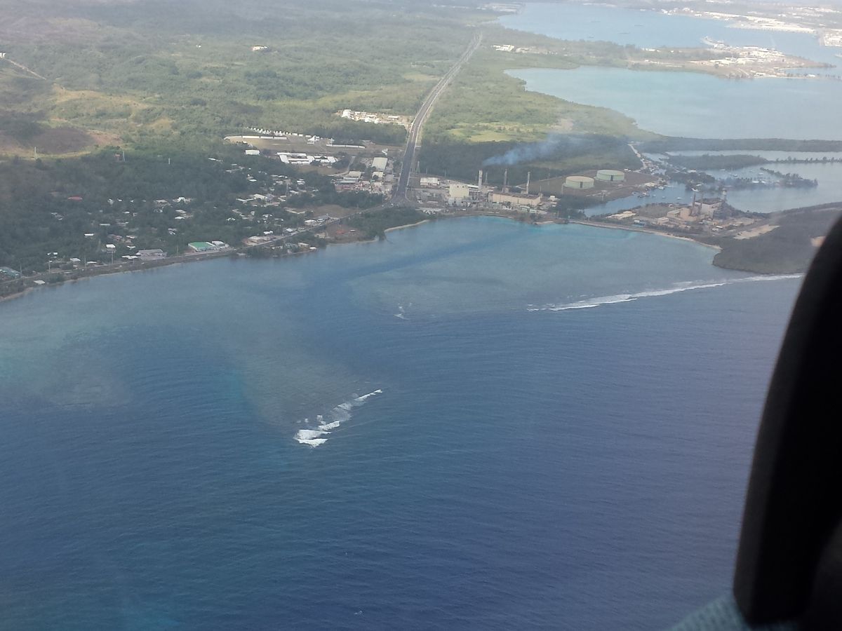 今回はグアム国際空港から先ず恋人岬方面へ向かい、方向を変えながらタモン湾~海軍基地に沿って飛び、ココス島上空で再度方向を変えながら、その後タロフォフォの滝の上空を旋回し、グアム国際空港へと戻るルートでした。