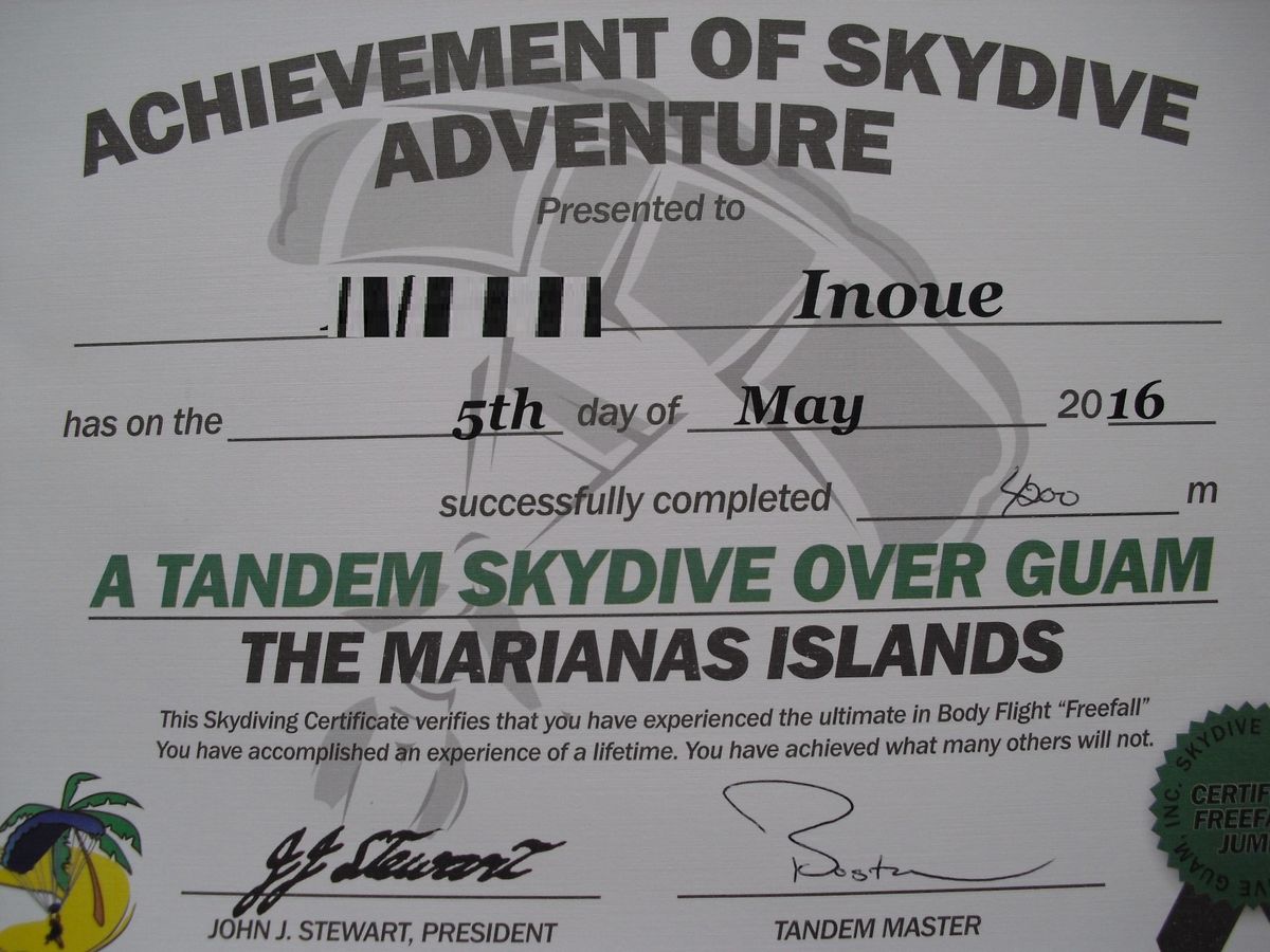 この度はスカイダイブグアムへご参加いただき、誠にありがとうございます!!