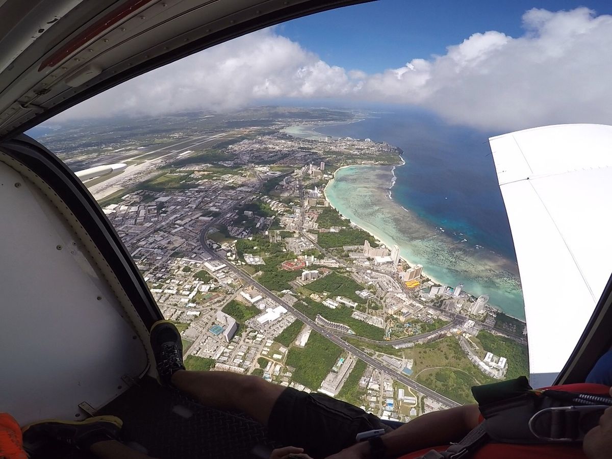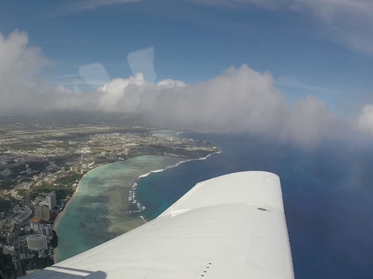 ビデオによる操縦説明のあと日本人パイロットによるレクチャーがあり、いざ出発。グアムの海を空から見ることができてとても楽しかった。