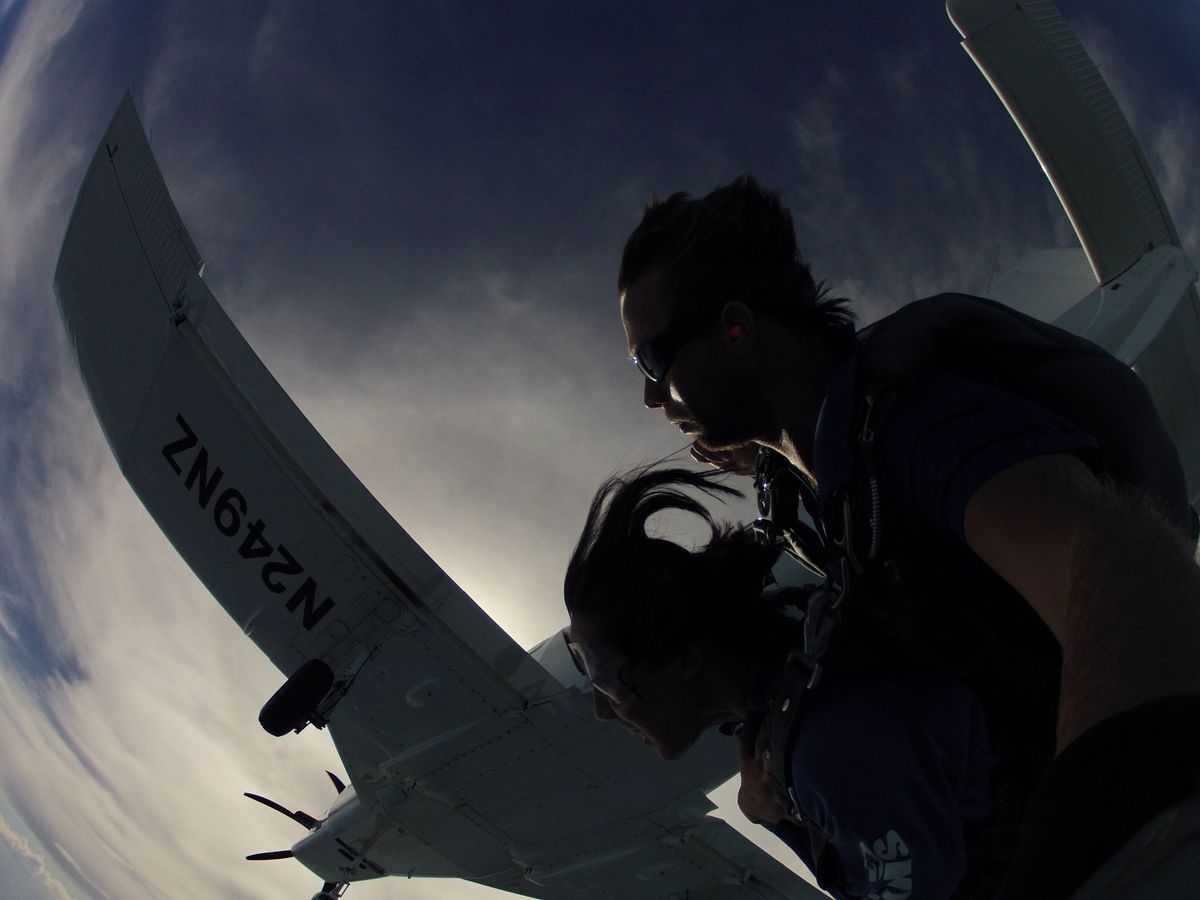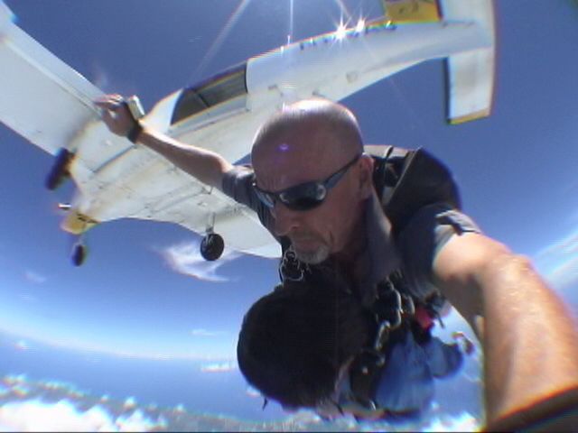 スタッフの方に説明を聞き、簡単なビデオを見た後に着替え、セスナに乗り込みます。ぐんぐん高度を上げる飛行機に全員がドキドキです。しかし、眺めがいいのなんの、このセスナだけでも一見の価値あり。そして、高度が4200mに達し、運命の時。