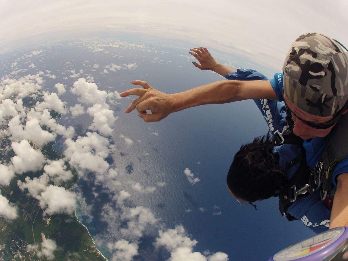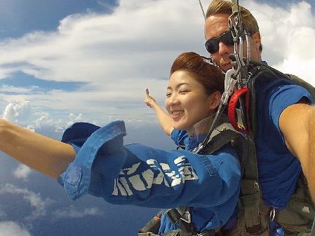 高度は最高にしました。怖かったですがインストラクターが緊張をほぐしてくれます。ベルトでしっかりホールドされていたので安心でした。ハワイより価格が高いのが残念でしたが、大変貴重な体験になりました。パラシュートが開いたあとはまわる景色で少し車酔いみたいでした。気になったのはインストラクタが持っているハンデイカメラで撮れてる映像に個々で見ると差が大きいです。勇気で参加した自分をほめてあげたいです。