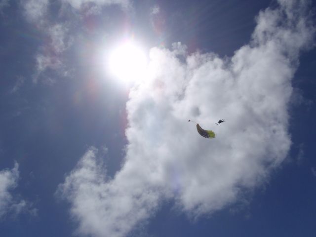 2000m を超えたあたりからの地上の景色はもうミニチュア。雲の間を飛び抜け高度4400mへ到達するともう怖いとか怖くないとかというよりも既に宙に浮いてるような感じです。そこからはダイバーさんのタイミングで有無を言わさずテイクオフ。フリーフォール中はほんとに宙を舞ってるようでサイコーです。