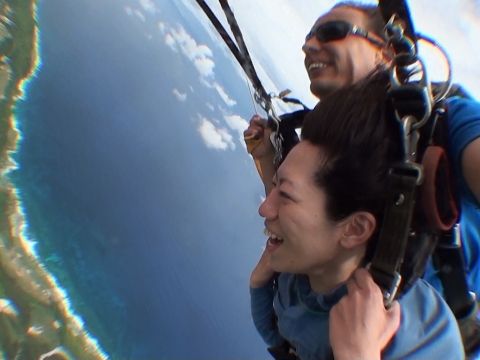 …とはいえ、実は高いところも苦手。本当にスカイダイブできるか不安もかなりありました。でもフレンドリーなスタッフがマンツーマンでついてくれ、場を盛り上げてくれながら一気にダイブ!おかげではるか上空から風をきりながら降りてくる、すごい爽快感を味わえました。地上に降りてからもしばらく興奮さめず。貴重な体験ができて、とても満足です。