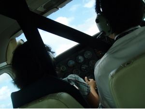 私は飛行機のこととかまったく知らない素人です。今回初めての海外旅行だったんで日本人が多くて英語できなくても大丈夫というのでグアムへ行くことにしました。グアムで何かおもしろいことないかなと検索していたらAlanページでセスナの操縦があるのを見つけました。小さな子が操縦していたので自分もやってみようかなと。ちょっと心配でドキドキしていたんですが、当日ホテルにお迎えにきてくれた方は日本人のやさしい方でした。聞くと会社の方全員が日本の方なので、教官の方ももちろん日本語でやさしく教えてくださいました。体験操縦は訓練コースを申し込みましたが、これが実に楽しい!どう楽しいかっていうのは全部教えてしまうと楽しみが減ってしまうので内緒ですが私の気に入りは着陸の時です。私の時はちょうど旅客機が到着し着陸しようとしている機を見ながら、後ろから追いかけるように滑走路を目指して向きを変え速度を落とし旅客機が使った同じ広い滑走路に向かって横風に揺れる機体を修正しつつ緊張感を伴う着陸!この時の進入角度を保つには”あるものを見ながら”行うのですが、その時こそが自分で操縦しているんだなぁと実感するはずです。そしてふたたびスロットル全開でタッチアンドゴーです!!たまりませーん。