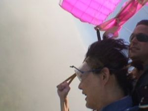 結局、参加者全員がオプションを付け最高4200mから飛びました。スタッフいわく富士越え!!パラシュートが開くまでの落下時間約1分(2400mからだと15秒)。Gもかからず浮いているような不思議な感覚でした。