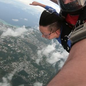 以前からスカイダイビングには興味があったのですが、綺麗な海と空を見ながら飛びたいと思い、今回グアムで体験させていただきました。