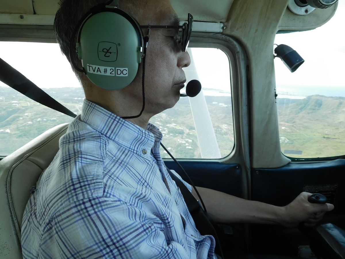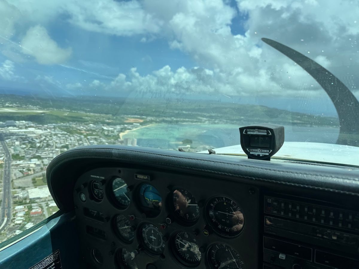 セスナを本当に操縦出来るのか、半信半疑てしたが、簡単なビデオを見たあと、教官の指導のもと、グアム国際空港の滑走路を進み、離陸、上昇、水平飛行、旋回等体験。グアム島を60分ぼど飛行、米軍基地上空や小野田さんが隠れていた密林の場所等説明してもらい、無事に着陸出来ました。私だけが操縦桿を持ち操作操縦して飛行しました。信じられない体験でした。