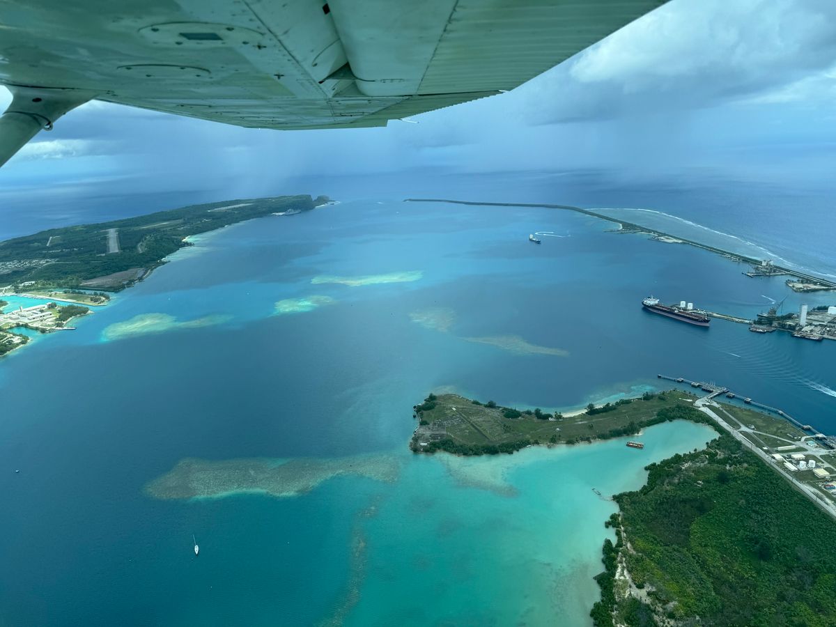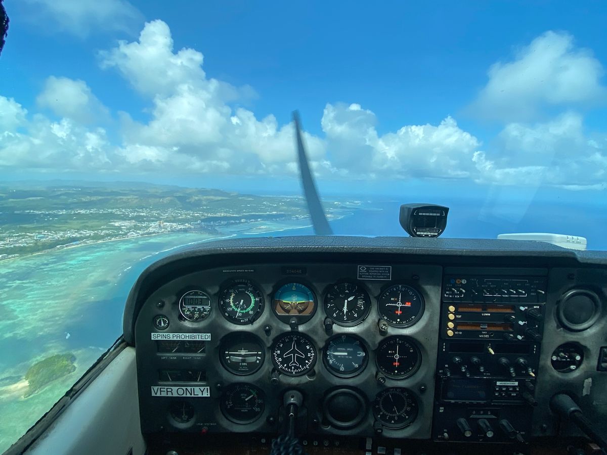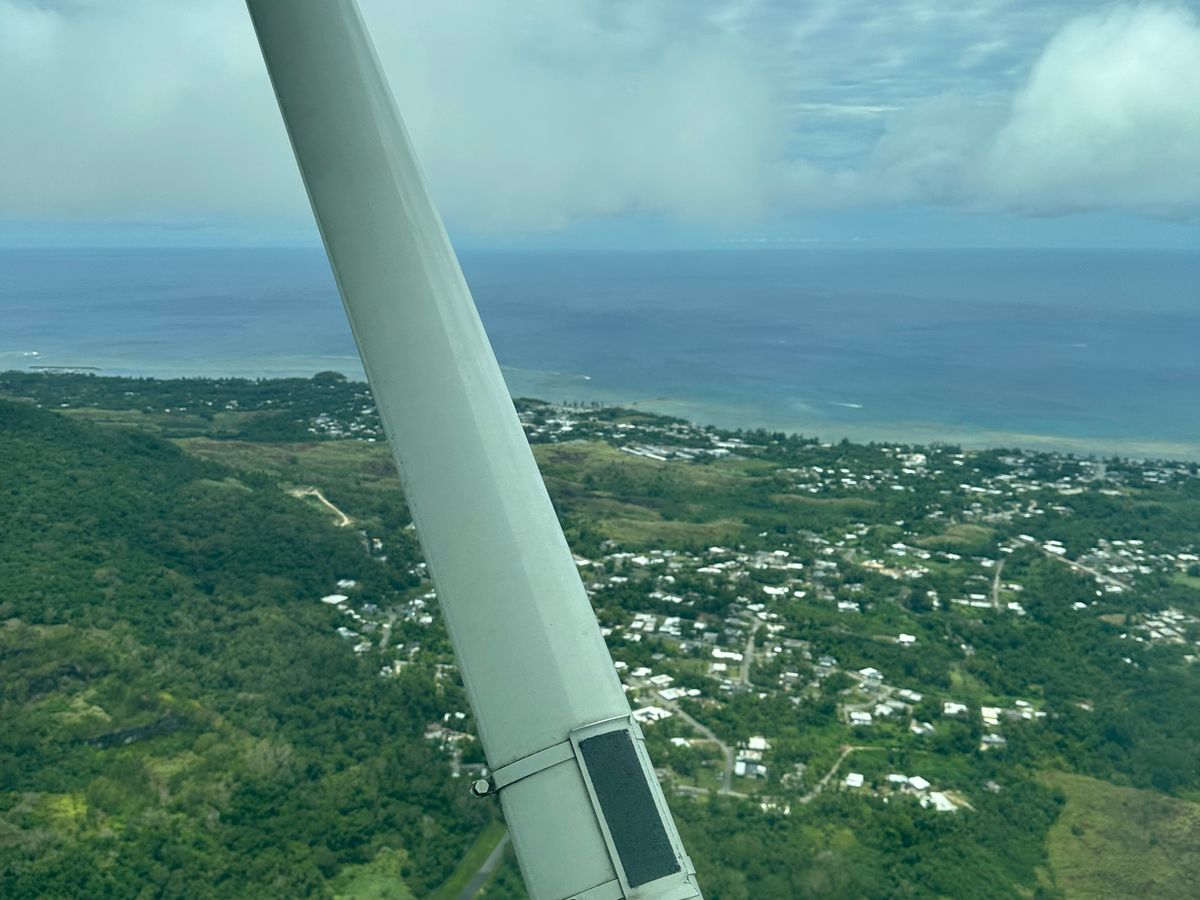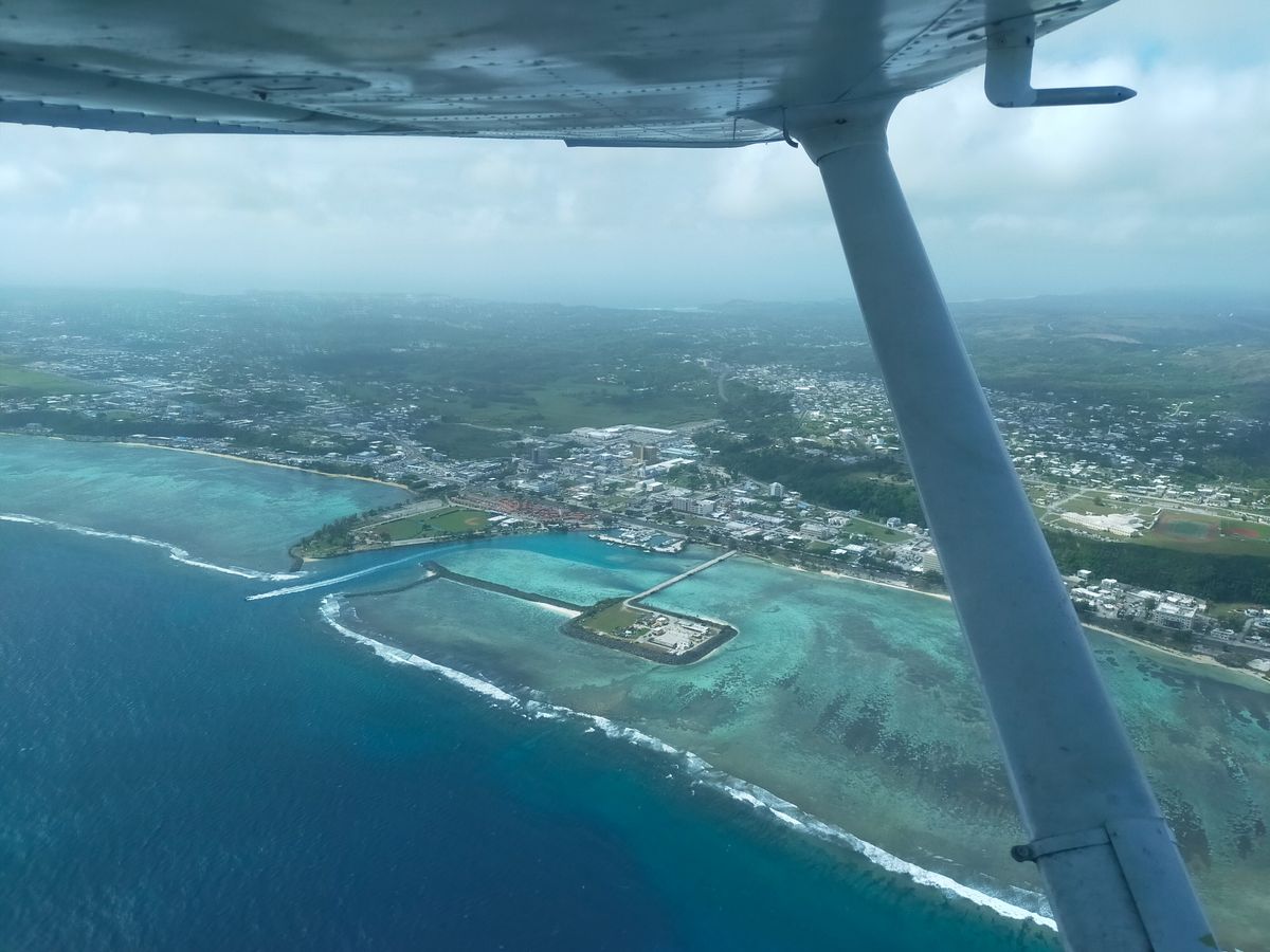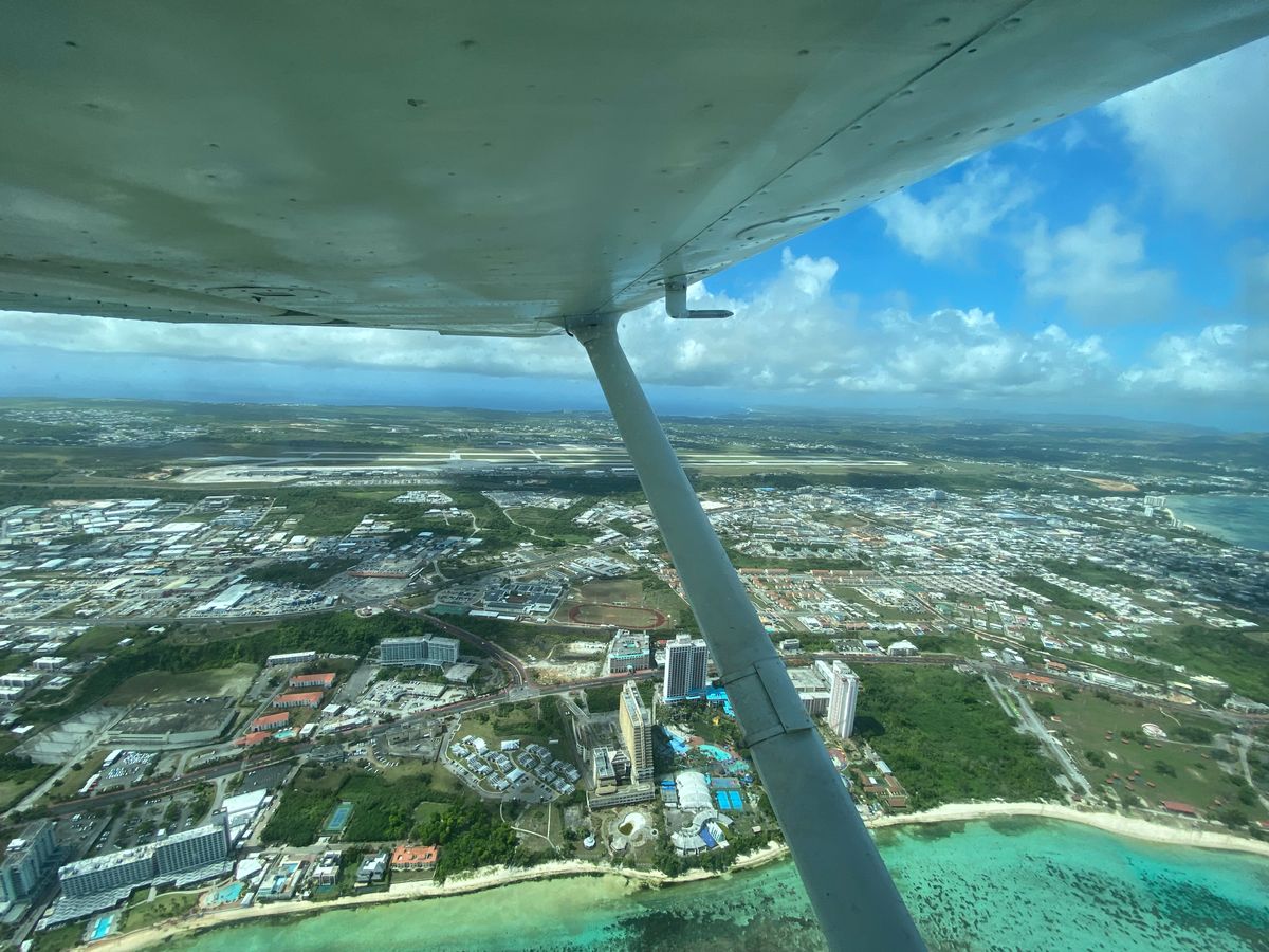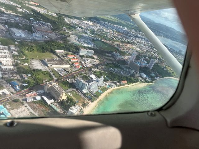 グアム上空を飛行して景色を楽しむ。
