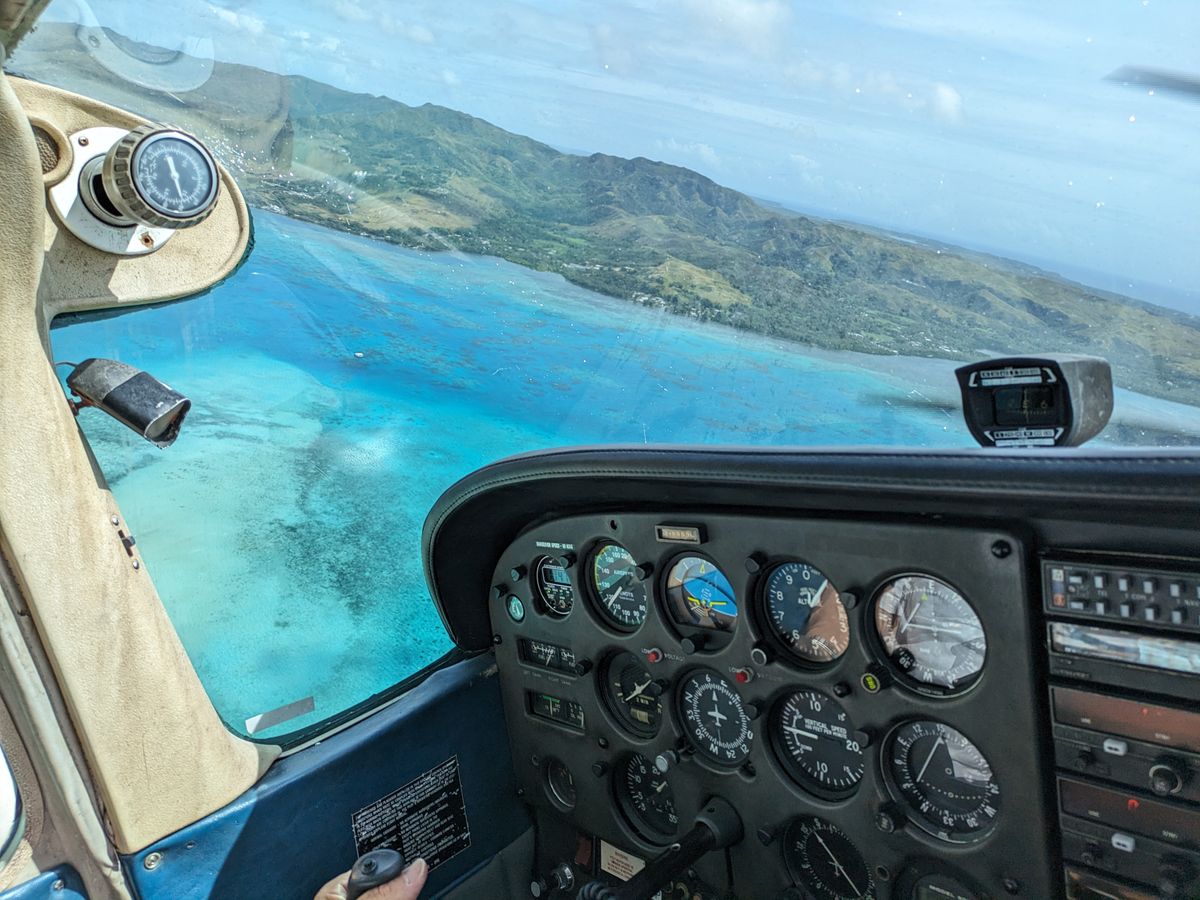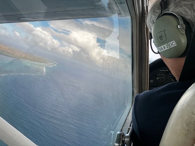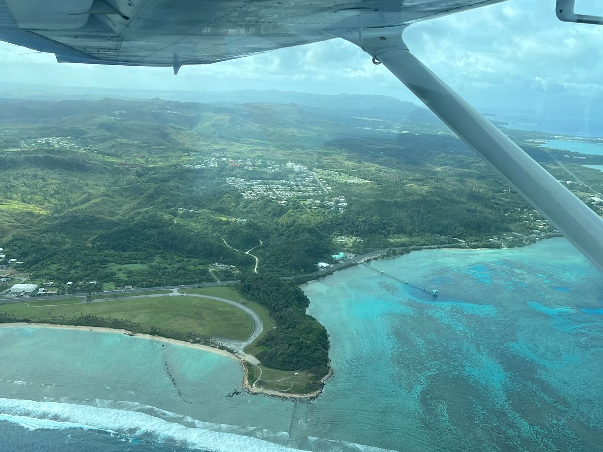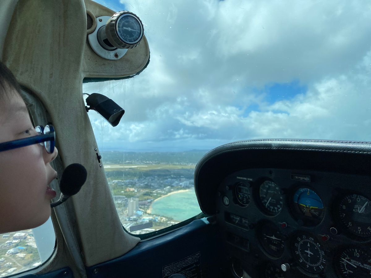 空から見るグアムの海は美しくて、優しいパイロットさんは操縦や無線連絡もありながら、見える景色のガイドだけでなく、今管制塔と何をやりとりしたかとか、何時の方向にエアラインが来ているのでそちらが降りるのを待って降ります等、逐一教えてくれたのがとても興味深く、子どもにもわかりやすく、ありがたかったです。