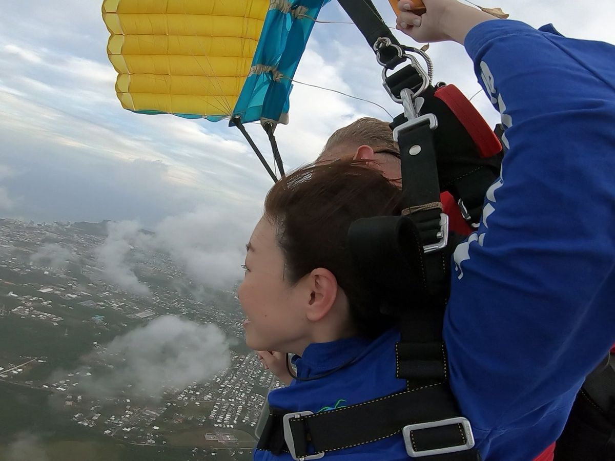 以前からスカイダイビングには興味があったのですが、綺麗な海と空を見ながら飛びたいと思い、今回グアムで体験させていただきました。