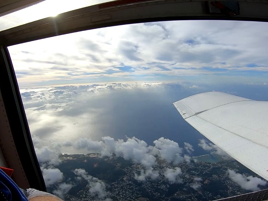 その他、飛行機でしか近づくことのできない場所を含めて島の名所を解説していただきながら飛行します。途中、空から円状の虹が見えたり、雨雲に近づくと機体が不安定になったり、真っ白な世界になったり、気付かないうちに機体の高度が高くなっていたり、空での体験をしっかり味うことができました。