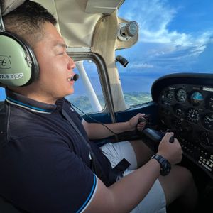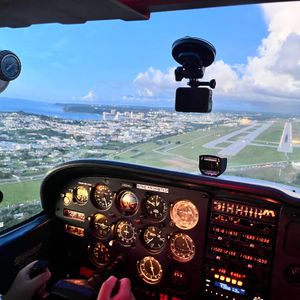 訓練コースを選んで、訓練空域にて急旋回や失速、タッチアンドゴーも出来て楽しくフライト出来ました。45度傾けて回るのは、海や地上が横に見えて感動。着陸は、滑走路の空き待ちでタモンビーチ辺りを2回旋回して、ちょっと得した気分でした。教官のご指導の元、安全な飛行が出来て大変満足です。