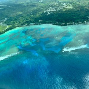体験操縦への感動をひたすらに綴ってしまいましたが、上空から見るグアムの海もとても素晴らしいものです。