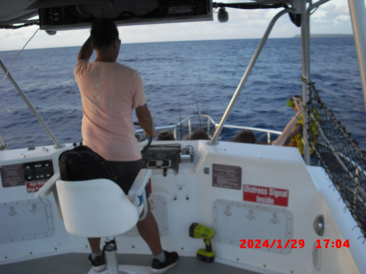 うぴんこ 様 この度は、ご参加ありがとうございました。グアムのお天気は変わりやすく、出港時は薄曇りでも外洋では美しいサンセットが見える事も多いのですがあいにくのお空でしたようで私たちとしても心苦しく残念に存じます。イルカウォッチングもお楽しみ頂けたことはよろしかったです。