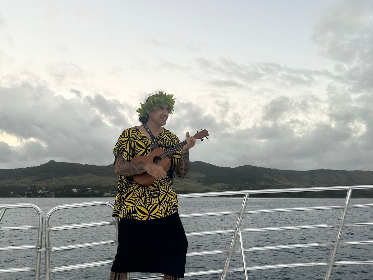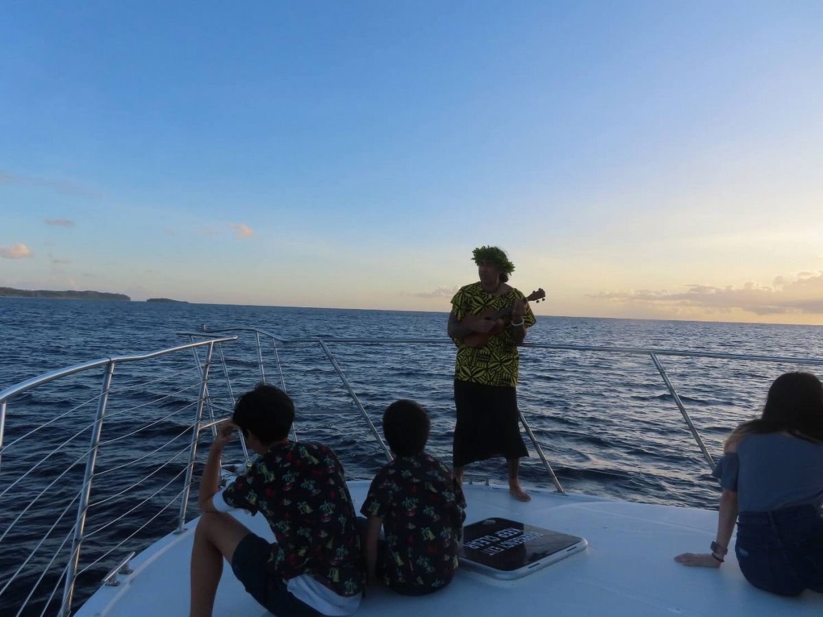 サンセットクルーズは夕日とウクレレが旅行の素敵な思い出になりました★欲を言えば、みんなの知ってる曲も1曲演奏してもらえると良いなぁと思いました。
