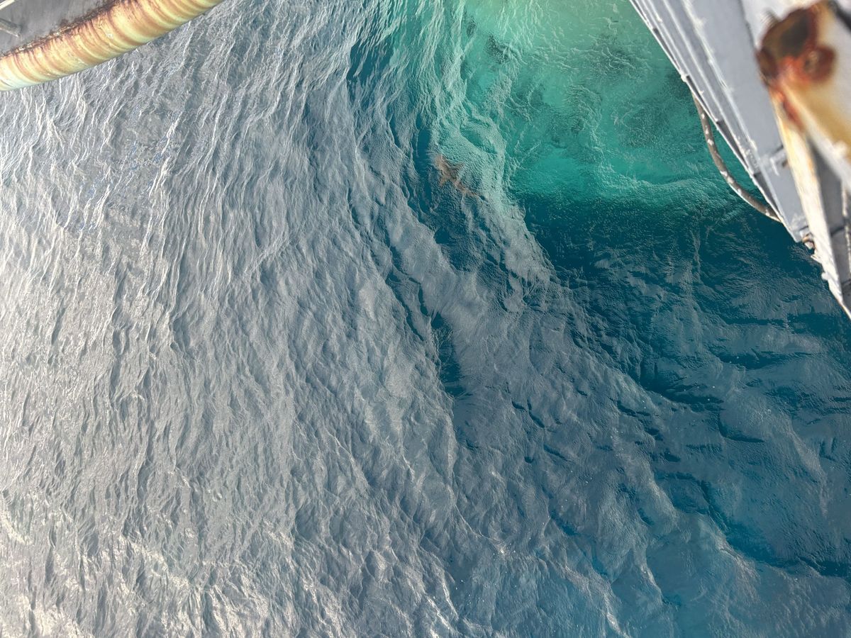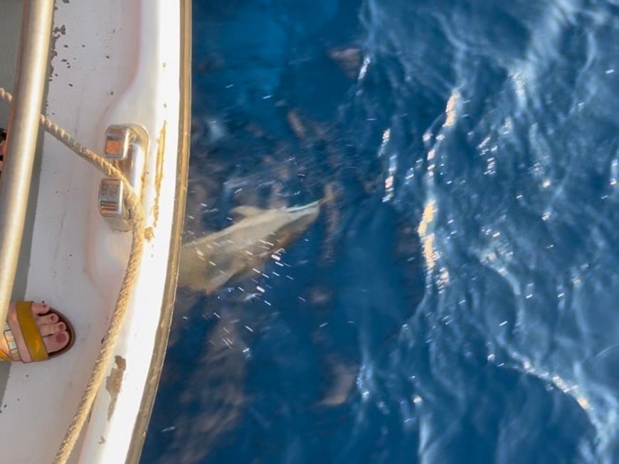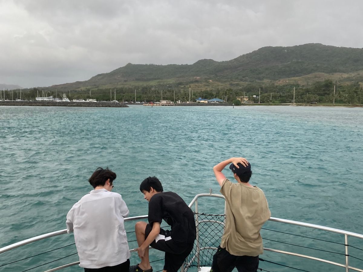 太陽に雲がかかってしまっていたのですが、フレキシブルにプランを変更し、イルカやウミガメが見られる可能性のある方へ進路を向けてもらえました。その日は結局見られなかったのですが、数日前には何匹ものイルカに出会えたそうです!
