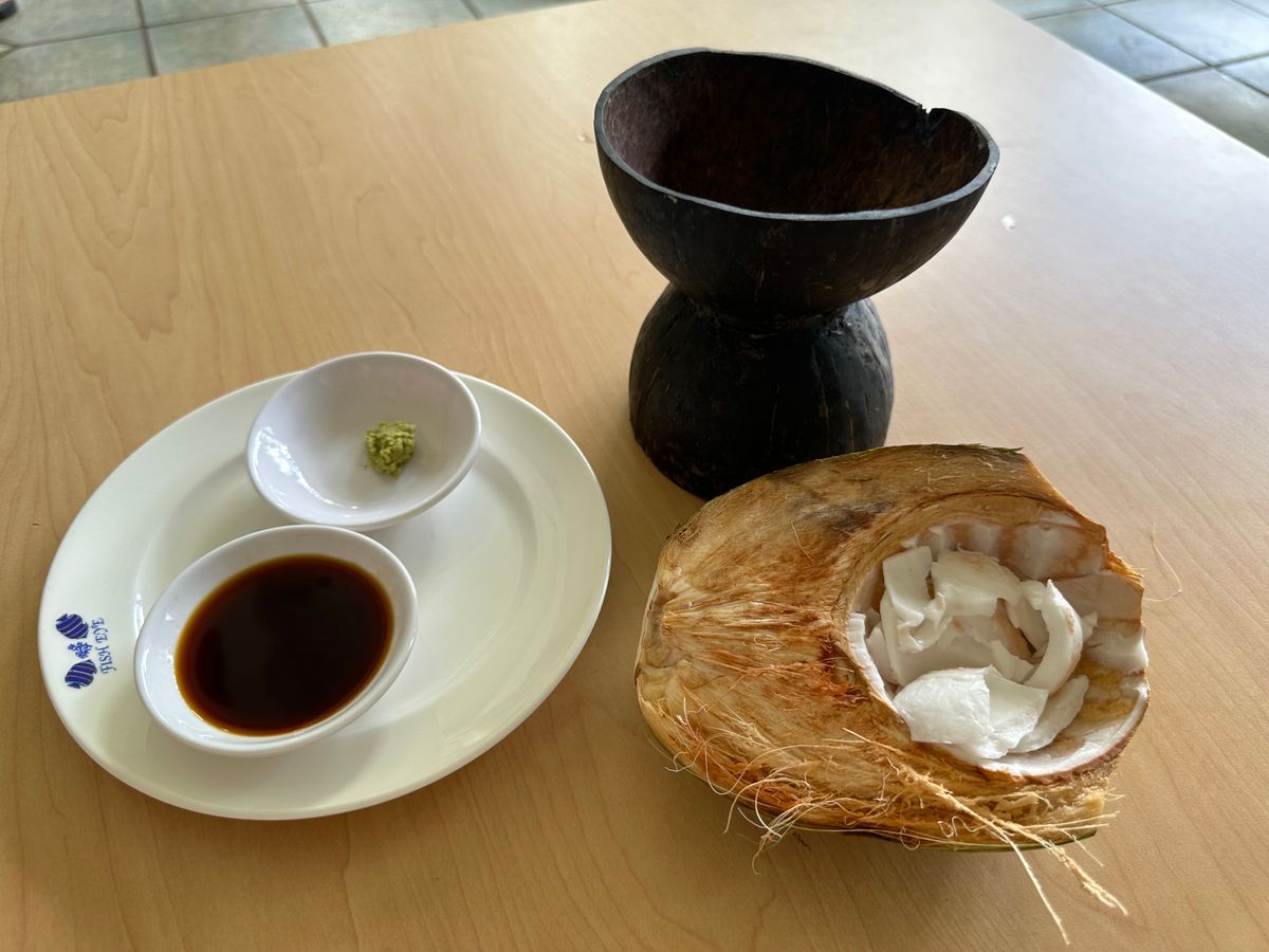 ココナッツ刺身やココナッツウォーターを試食して、ココナッツを削ってココナッツミルク作りも楽しかったです!
