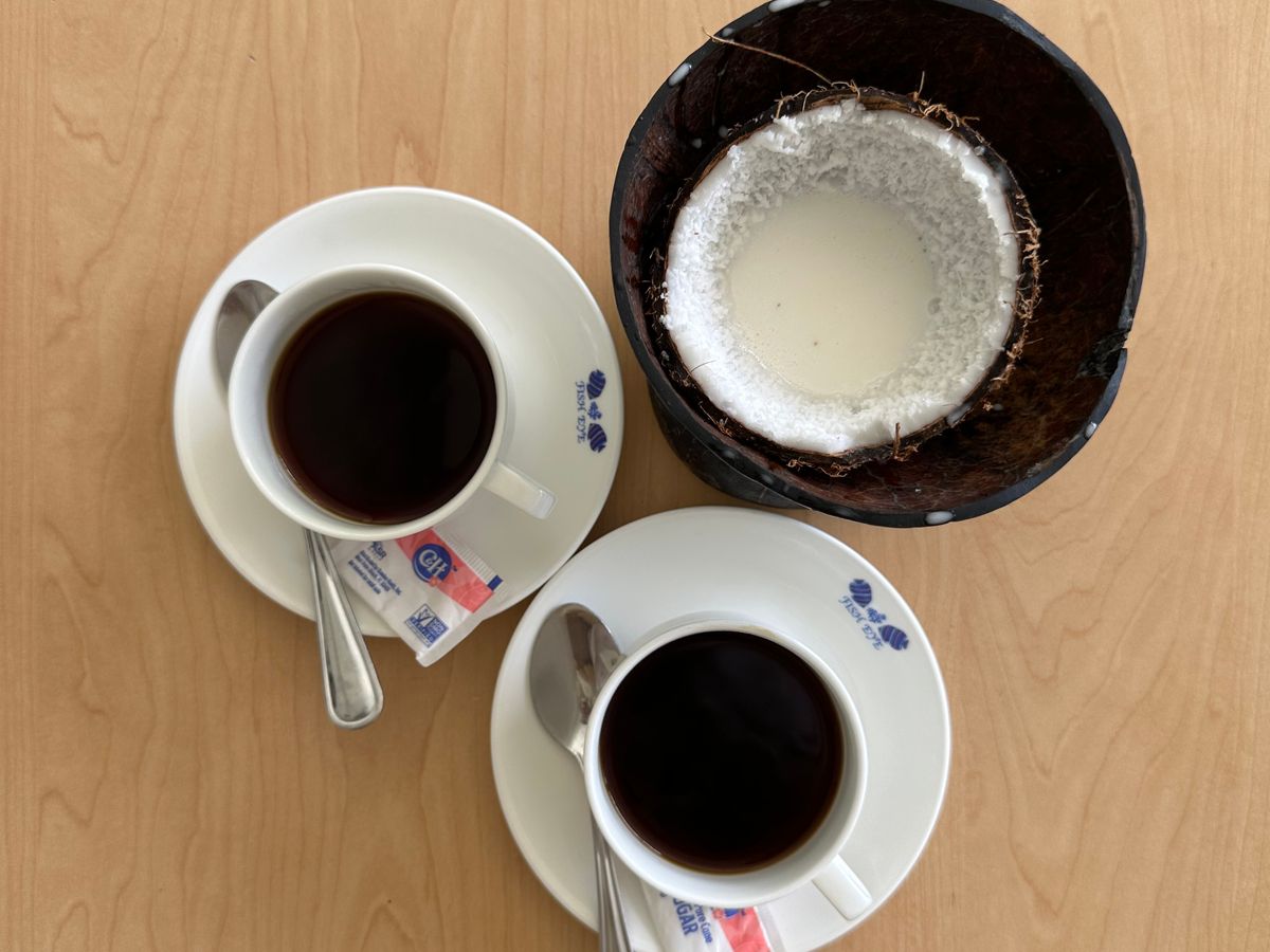 ココナッツ体験では、ココナッツを様々な方法で頂くことができ、とても貴重な経験でした。ココナッツウォーターやココナッツのお刺身、ココナッツミルクなど今まであまり食べたことのないココナッツをふんだんに楽しむことができました。特にココナッツミルクを入れたコーヒーはほんのりとココナッツが香りマイルドな風味が絶品でした。説明してくださる方々の英語も分かりやすく、時々ジョークも交えてくださるおかげであまり英語が得意でない私でも楽しむことができました。