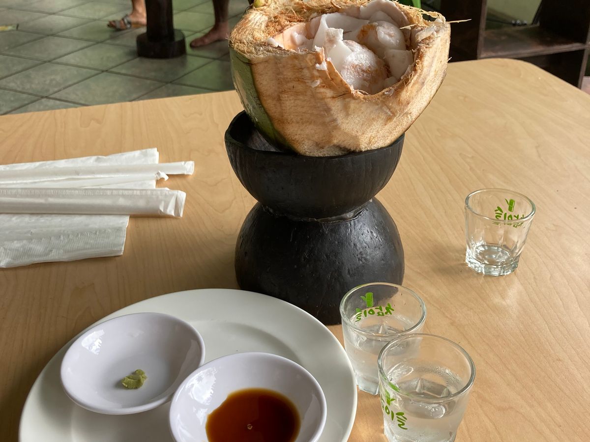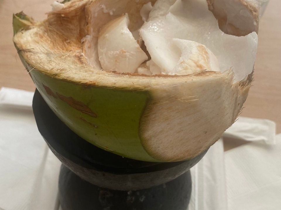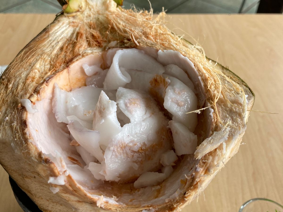 前から気になっていた、ココナッツジュースを冷えた状態で飲ませていただきました。意外と癖がなくあったりしていました。