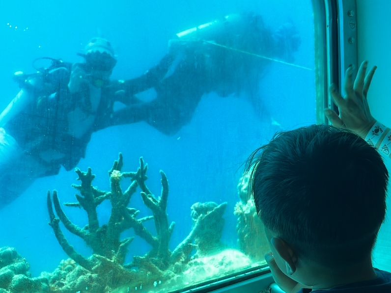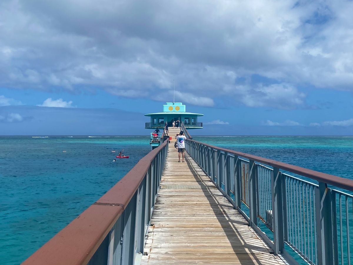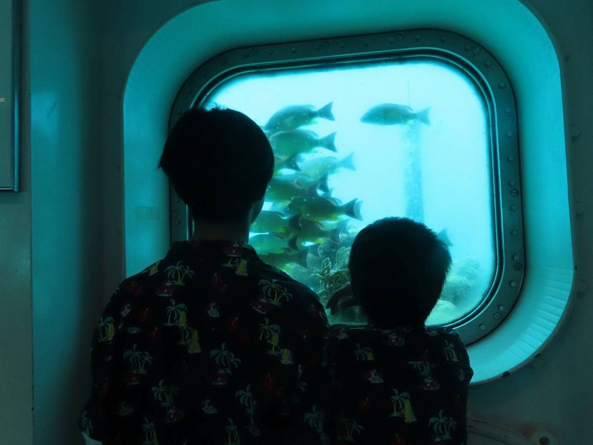 海中展望台までの桟橋から見える景色は絶景で、グアムに来てよかったと思えると思います。海中展望台自体も、餌がついている棒のような装置のおかげか、絶えず魚を観察することができ、子供達も喜んで見ていました。