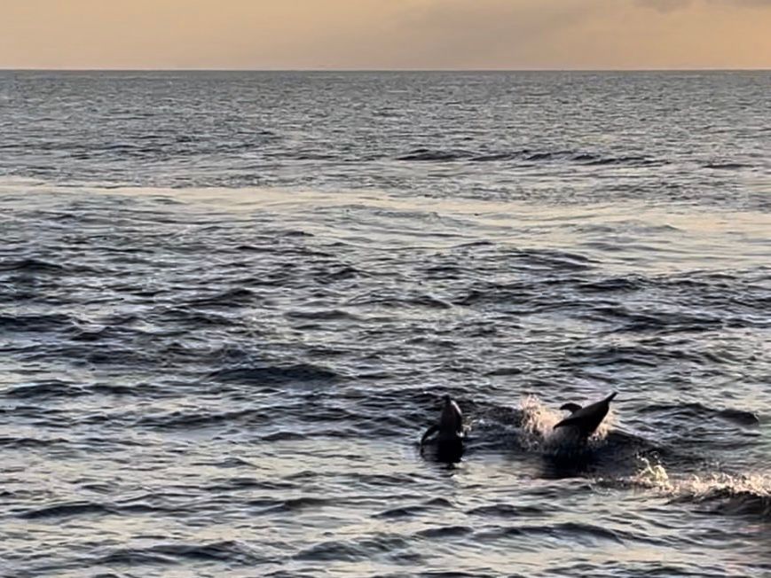 船長が、あちこちで飛び跳ねているイルカの場所を教えてくれて、皆で大喜び!