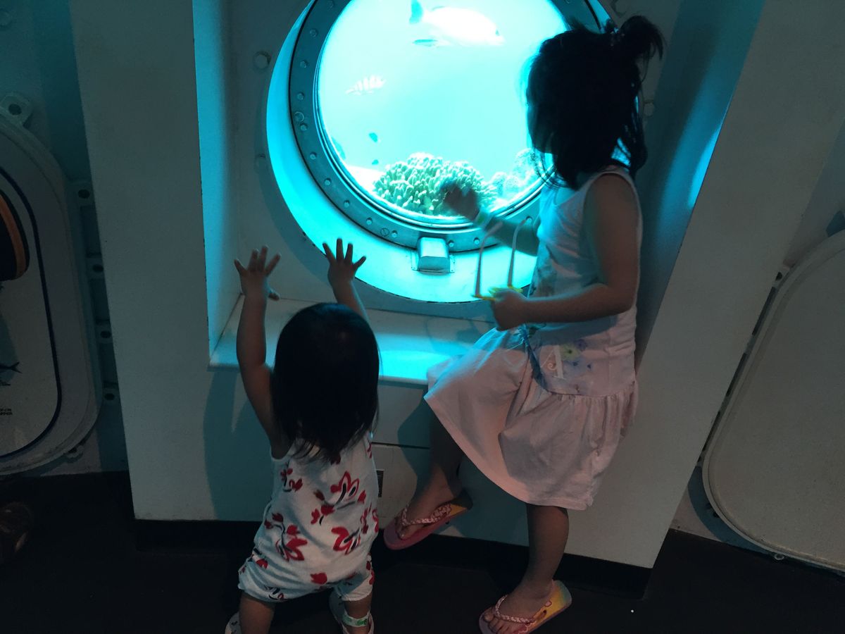 海中展望塔は魚がたくさん見ることができ、子供たちは興奮気味でした。ダイバーの方がバブルリングを作って、塔内にいる子供たちに向かって飛ばしてくれたのがおきに入りでした。ランチビュッフェもおいしかったです。