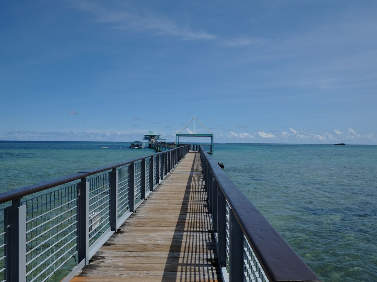 天気にも恵まれて、まさにガイドブックそのもの!海中展望室までの橋から下を見ると、底まで見える透明度の高い海と美しい景色に感激しました。