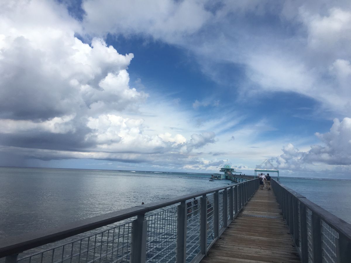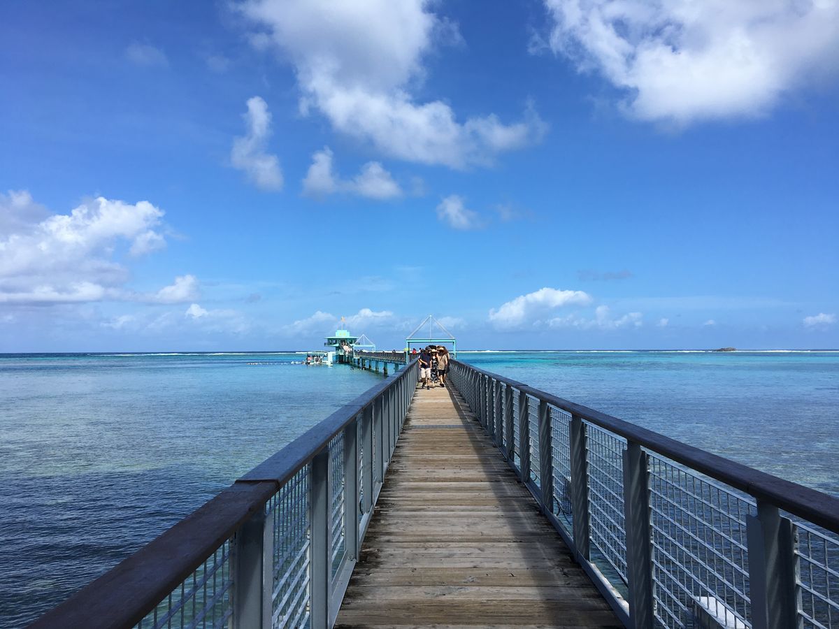 5歳の娘と2人旅。ランチ付き。ホテルから少し離れていたので、送迎バスも楽しいドライブ。到着すると目の前には海へ続く桟橋が!こんな景色は見たことない!グアムに来たーって感動でした。展望塔はちょっと物足りないので、シュノーケルやイルカウォッチングとセットなら◎ランチのチャモロ料理も目的の一つ。実は、知り合いの間でここが美味しいと評判。個人的に大好きな味でした。