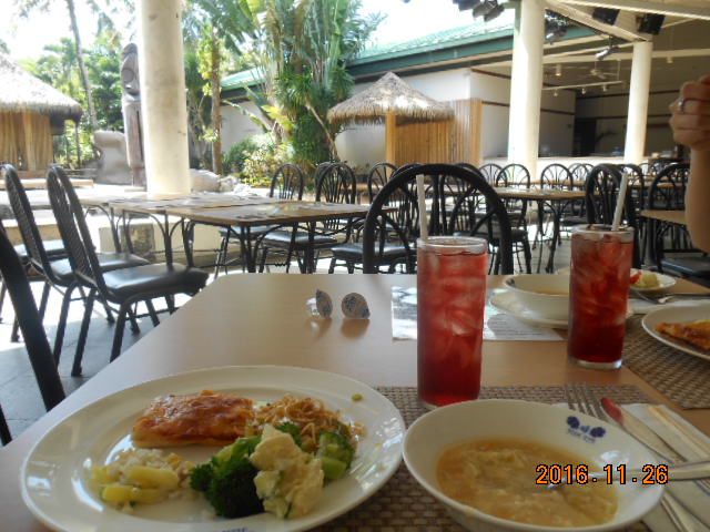 ランチビュフッェはとても良かったです。グアムでは貴重な、生野菜や果物を沢山食べる機会!飲み物も、珍しいメニューがありました。