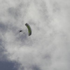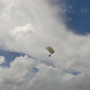 パラシュートが開いてからは、グアムの景色を見ながら優雅に飛んでました。雲の中も通り抜けました!パラシュートの操縦もさせてもらえて楽しかったです。