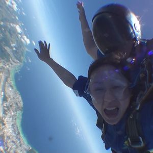 …とはいえ、実は高いところも苦手。本当にスカイダイブできるか不安もかなりありました。でもフレンドリーなスタッフがマンツーマンでついてくれ、場を盛り上げてくれながら一気にダイブ!おかげではるか上空から風をきりながら降りてくる、すごい爽快感を味わえました。地上に降りてからもしばらく興奮さめず。貴重な体験ができて、とても満足です。