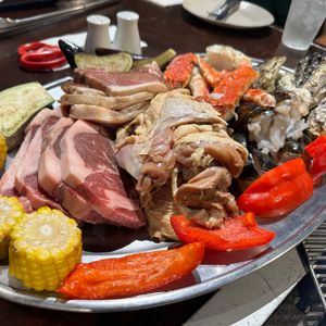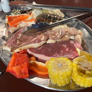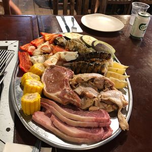 男性4名で予約。ボリュームたっぷりで、出てきた時には「食べ切れるか?」と思いましたが、何とか完食。材料が提供される前に店員のお姉さんが「バーベキューは焼けるのに時間がかるから、早く提供出来るものを」と追加オーダーを(結構しつこく)取りたがります。熱意に負け、フライドオニオンだけオーダーしましたが、不要でしたね。あと、ビール飲み放題は缶ビールでの提供ですが、キンキンに冷えてて良かったです。