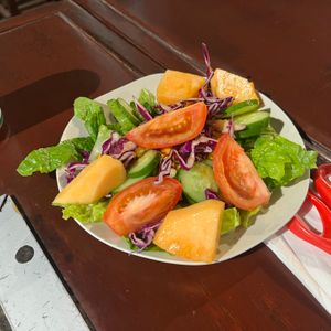 白いご飯・味噌汁・サラダ・果物が無料でおかわり自由です。