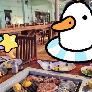 BBQのメニューは、一人当たり肉2枚、ブロックチキン、冷凍牡蠣、カニの足、身が付いていないロブスター。薄くカットしたかぼちゃ、ピーマン、とうもろこし、茄子。フリーのサラダは良かったが、フリードリンクといえどもアルコールは缶ビールだけ。紅茶と水は無料。このお値段ではこのメニュー