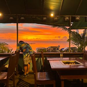 ちょうど座った席が端っこだったので、木と物置?みたいなので、かぶってサンセットが見にくかったけれど、最高でした!