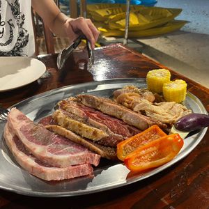グアム旅行最終日の夜に利用させて頂きました。大きなお肉のかたまりが複数出てきて、それを焼きながら、切りながら食べるスタイルです。当たり前ですが、焼肉のタレがないことを残念に思いましたが、食べてみるとお肉には味がしっかりついていました!しかもそれが最高に美味しい!!カルビバーベキューのコースにしましたが、ボリューム満点で、大満足でした。