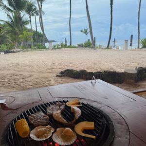 皆さんが書いてあるように炭火が暑かったですが、爽やかな海風もあり、日本の夏より涼しかったです!(多分)