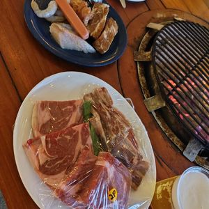 1人で焼く肉と野菜と海鮮は美味しかったです。