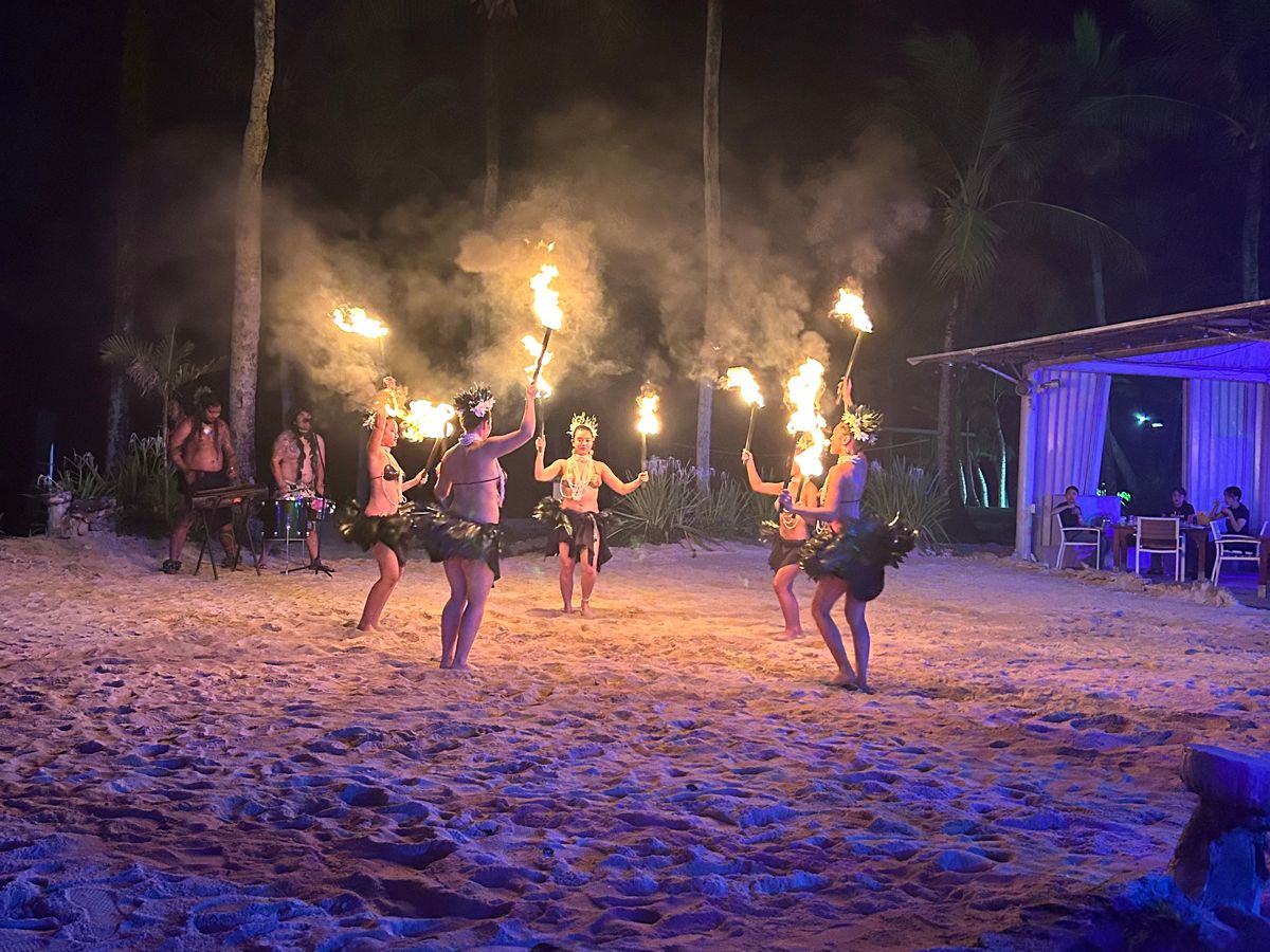 BBQがとても美味しかった!食べ物、ドリンクとも種類が豊富で、胃袋が2つ欲しいくらいでした。ハエが多いのはちょっと気になりましたが…ファイヤーダンスも、女性は可愛らしく男性は迫力満点で楽しめました。送迎もついて安心。