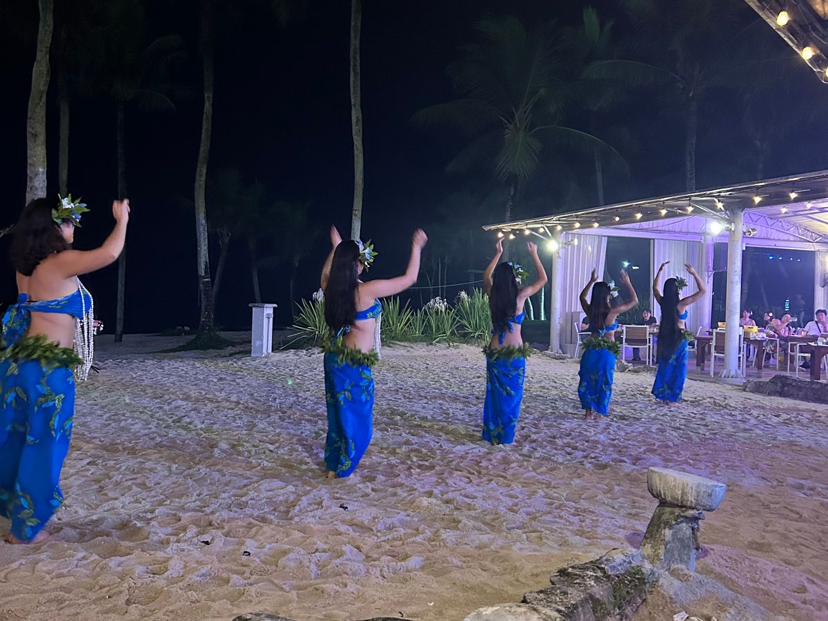 開催2日前で予約は取れましたが、当日は満席でした。レビューで色々書かれていたホテルへのお迎えは特に問題無く、むしろ早めに着いたので、子供は隣接のビーチで走り回ってました。私の記憶だとショースペース付近の席を確約する少し高いプランがあったような気がしましたが、ショーが始まればみんな食事を終わりにして席から離れて前の方に一斉に動き出すので、あまり細かいことは気にしなくて大丈夫です。ただしトイレは会場内にはなく隣接のビーチ用の砂だらけのトイレといった感じで、会場から一番近いところでも階段の上り下りがあるので、シニア世代や小さいお子様連れの場合は、タイミングに気をつけたほうが良いでしょう。