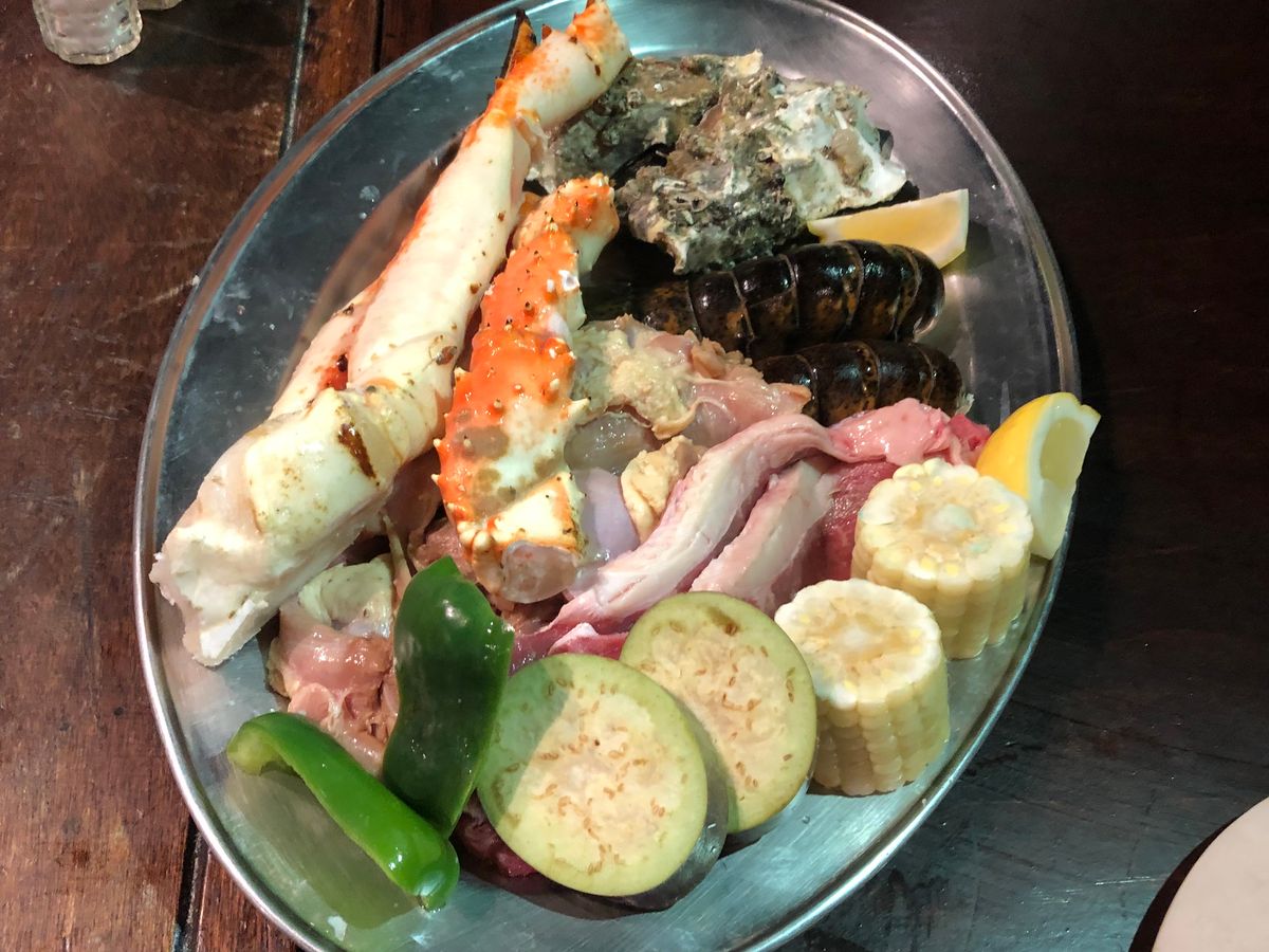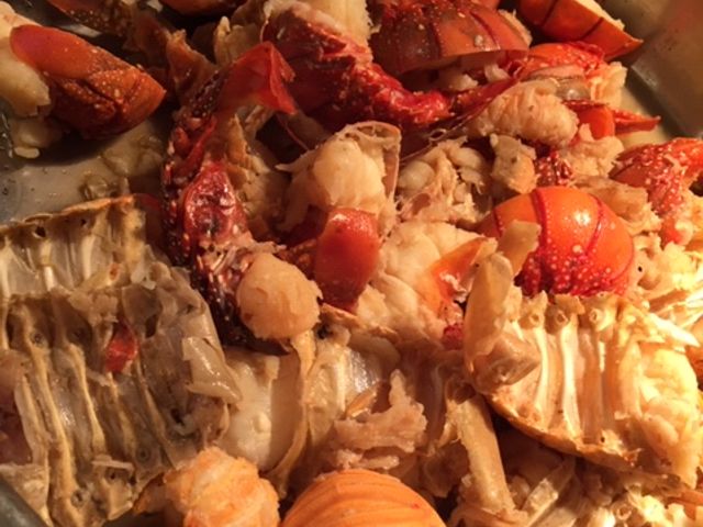 でも、ロブスターや蟹がとっても美味しいです。入れ替えで、時間制限があるので、焼くのが遅いと店の人が焼いたり、殻をむいたりしてくれます。