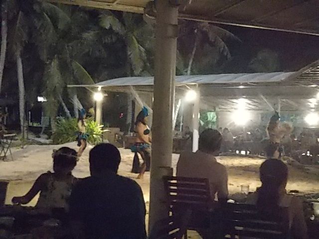 先に一時間ほど、BBQをします。そのあとファイヤーショーが始まって、ダンスに誘われて戻ったら、まだ焼く前のお肉とかも全部片付けられてました( ;∀;)