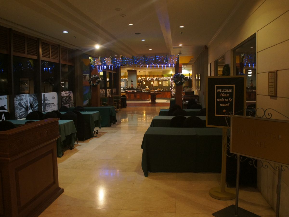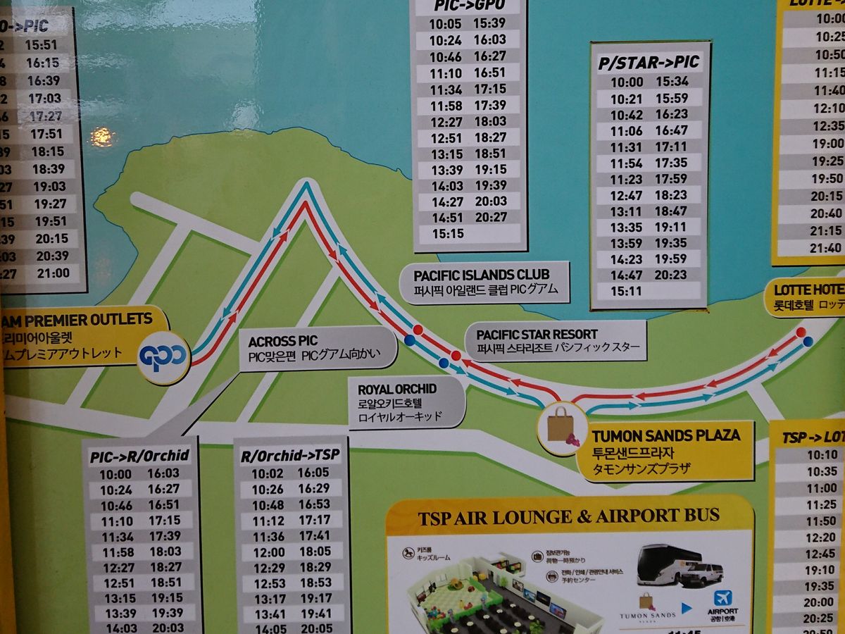 パシフィクスターには黄色(タモンサンプラザ)とデュティフリーの無料バスが止まります。トローリーバスはPICで降りてください。少し歩きますが帰りにはABC(コンビニ)マートで買い物もできます。ロビーを入ると見える階段を降りて四階です。朝御飯も食べましたが毎日日替わりで美味しいです。私はグアムの料理があまり口に合わないのですが見た目ではなく味見して選ぶと失敗がありません。それくらいの種類はありますよ。当日よりも予約だとチップも払わなくて良い?ので日本予約をオススメします。水着を下に着て食事をとったあと