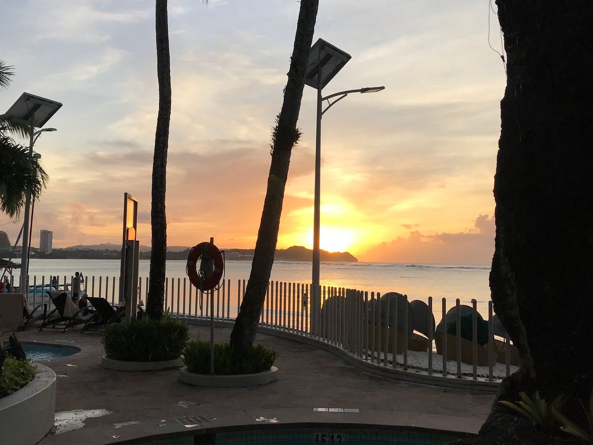 ビーチサイド確約とは言え、端だったので夕日は見えず。しかも砂浜(柵のすぐ側)に人がテントを出していたので余計見えませんでした。