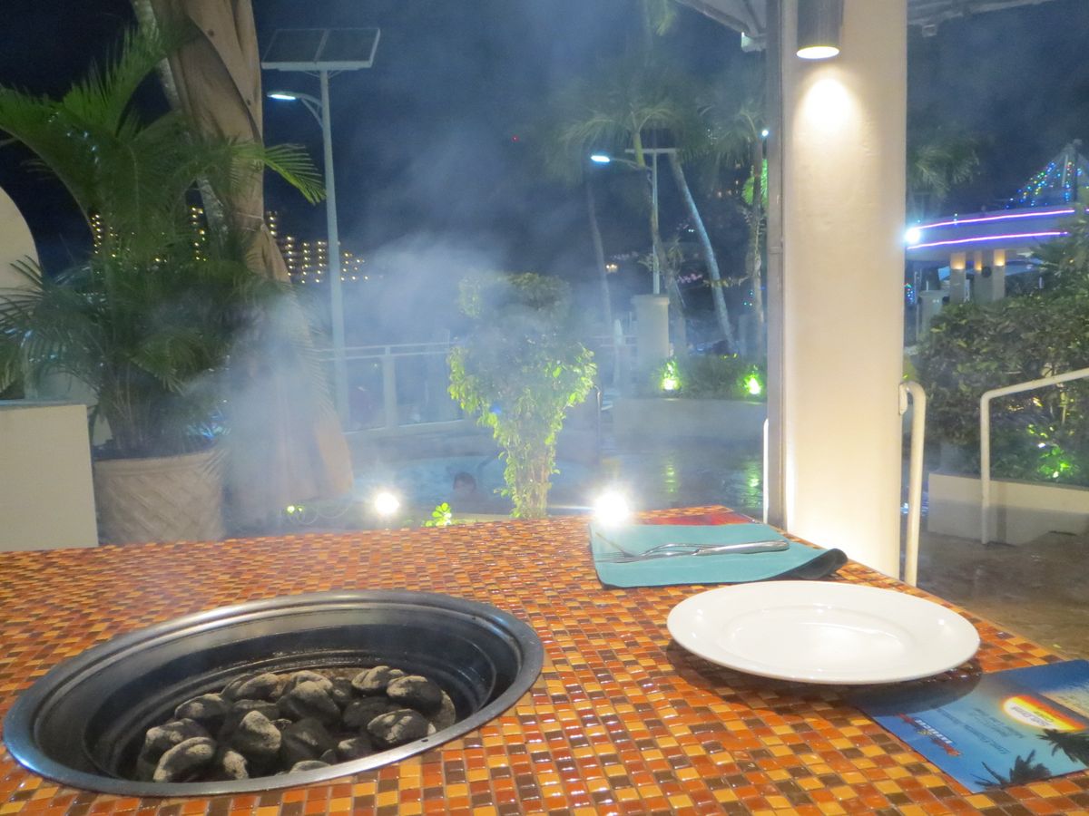 スターライトBBQ会場は 、エレベーターで一番下の1階の外のプールサイドにあります。