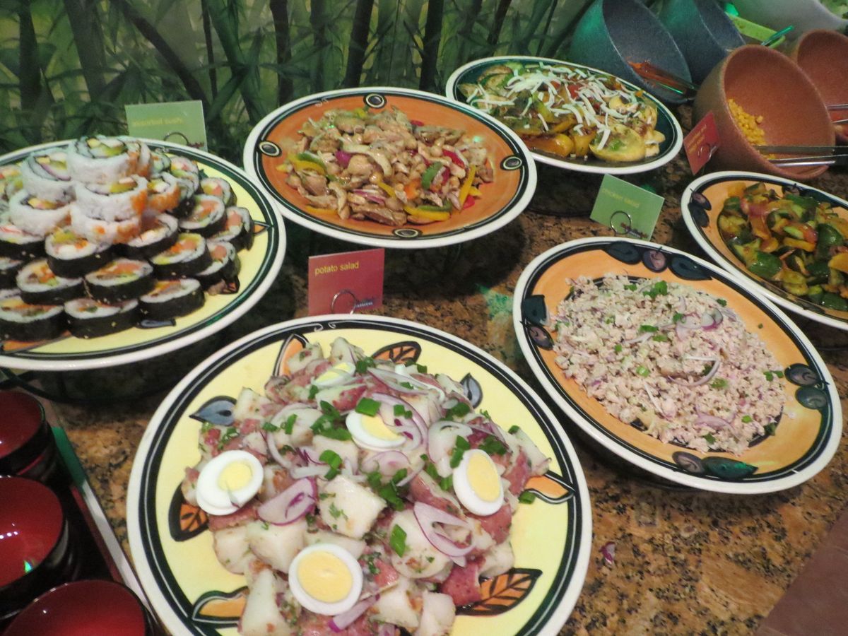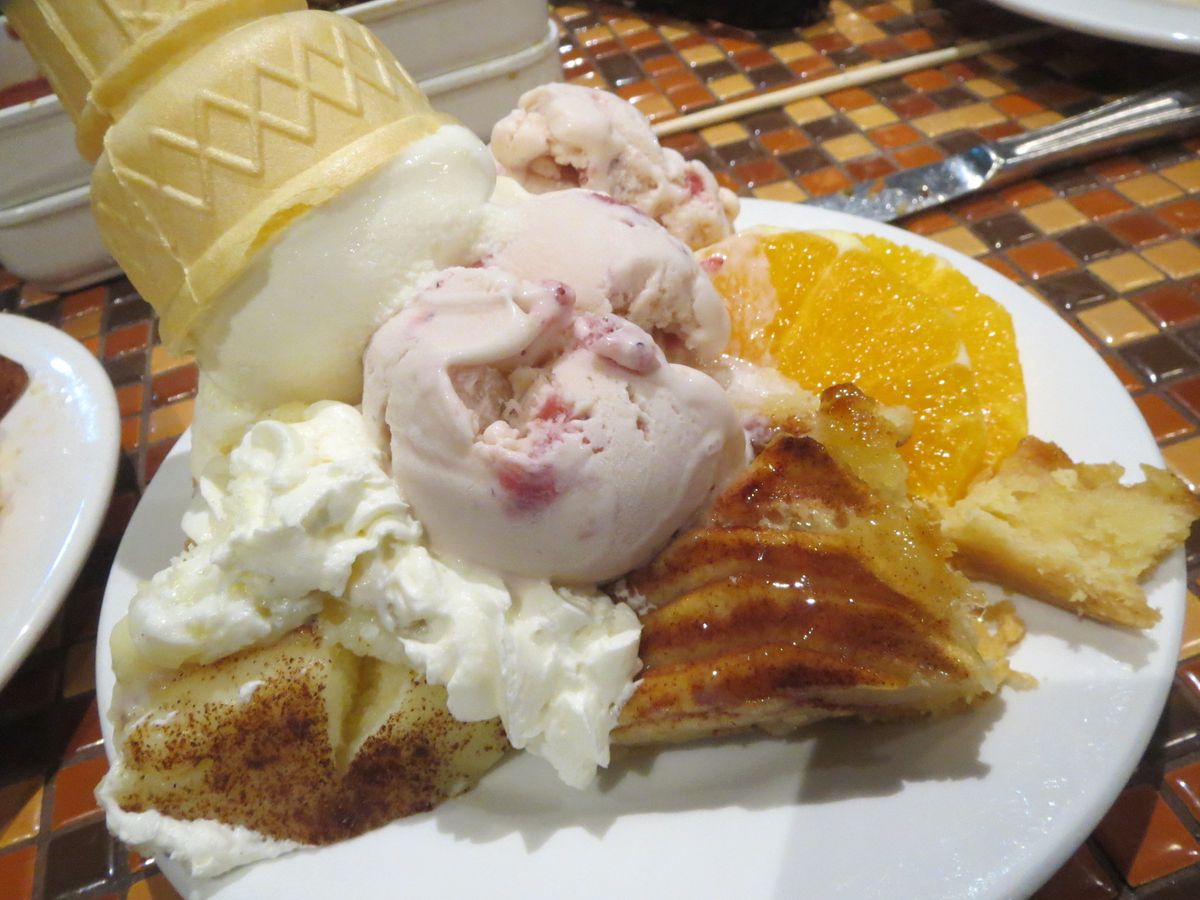 サイドメニューはバイキング形式の食べ放題ですが、サラダとフルーツとアイスなどがあります。