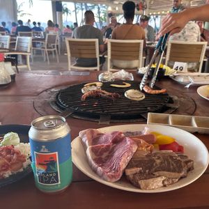 雨模様でしたが、濡れずに食事できます。シーフードメインのBBQでしたが、めちゃ美味しかったです。ポークチョップも柔らかくて美味しかったです。